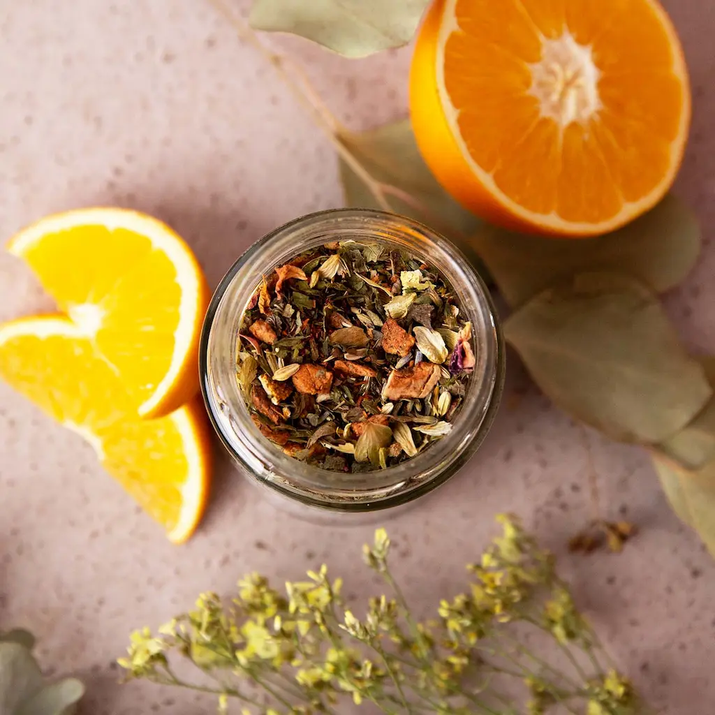Loser Bio-Rooibostee mit Baldrian, Hopfen und Lavendel. Die optimale Mischung für entspannte Abende. Genieße die feine Teemischung mit dem Geschmack von Zimt und Orangenschalen.